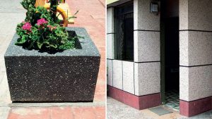 • Terrazos en pisos, escaleras, muros, rampas, sardineles y obras de arte pulidos y de forma antideslizantes