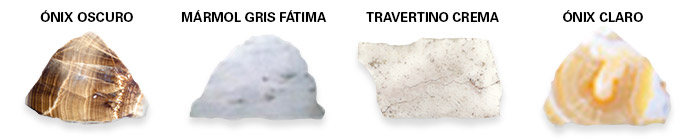 Rocas de mármol, ónix y travertino cortadas en forma de placas; con espesores de 1.5 cm; de tamaños irregulares.
